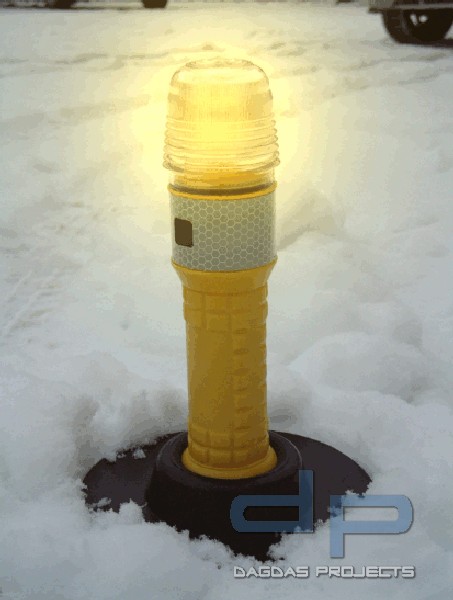 Eine stabile Gummistandplatte gewährleistet festen, kippsicheren Stand auf jedem Untergrund und bei jedem Wetter. Druch die Standplatte sinkt die 3Warn LED-Blitzleuchte auch bei winterlichen Verhältnissen nicht im Schnee ein. Als Zubehör ist ein Adapter für Verkehrsleitkegel und Faltsignale erhältich.