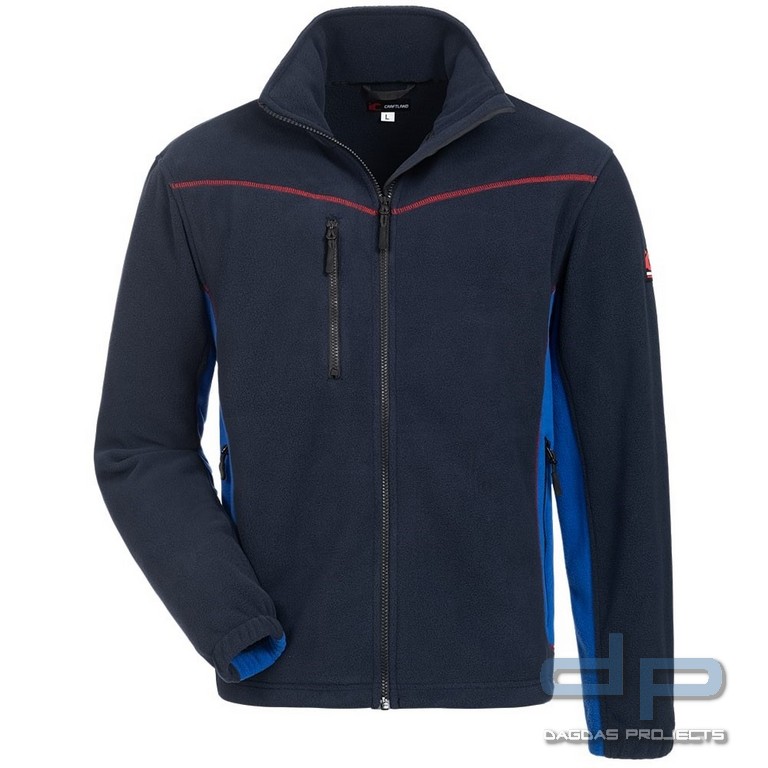 Obermaterial: 100% Polyester, Micro Fleece, Antipilling ausgerüstet, ca. 300 g/m²Farbe: marine/kornblauGrößen: S-XXXXL• Material ist atmungsaktiv• 1-Wege Front-Reißverschluss• CRAFTLAND® Logo auf dem Ärmel• elastische Ärmelbündchen• elastischer Kordelzug im Saum mit StoppernTaschen:• 2 seitliche Hüfttaschen mit Reißverschlüssen• 1 Brusttasche mit Reißverschluss