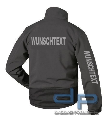 Behörden Softshelljacke mit Aufschrift nach Wunsch in silber reflektierend auf Brust und Rücken