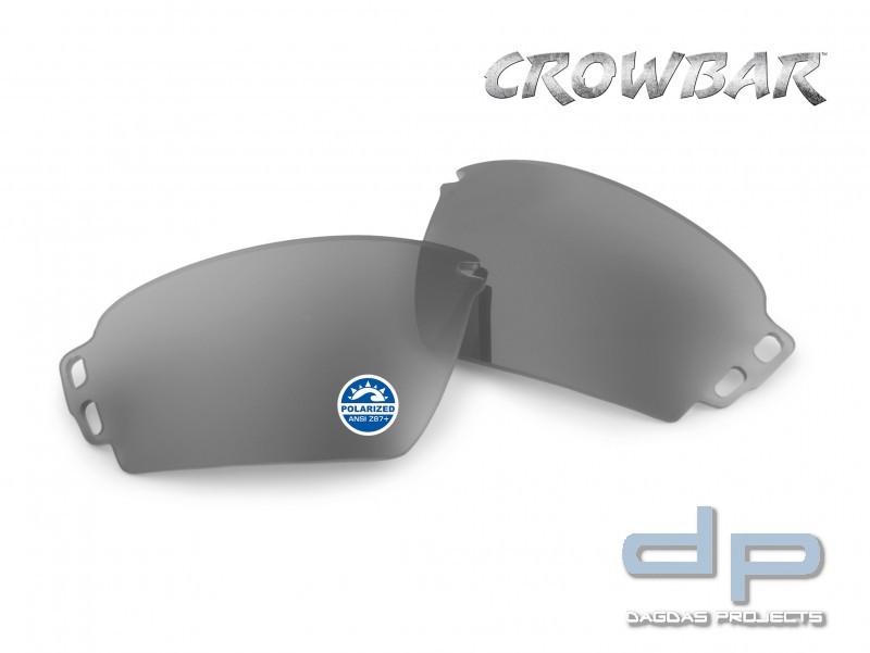 This kit includes two Polarized Mirrored Gray Crowbar™ lenses (right and left) and a protective lens pouch. The Crowbarbar™ sunglass is sold separately.