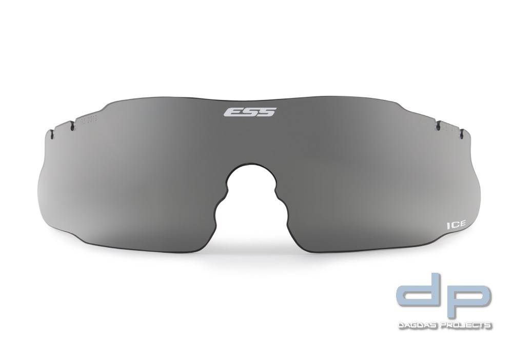 Klare, rauchgraue & gelbe Linsen, Softcase, Halsband, AntibeschlagtuchDie rahmenlose ESS Interchangeable Component Eyeshiehlds (ICE) ist leicht und bietet die einzigartige Kombination aus ballistischem Schutz, uneingeschränkter Sicht und auswechselbaren Linsen für ausgezeichneten Schutz der Augen bei jedem Licht. Die 2,4 mm starken Polycarbonat-High-Impact-Linsen ermöglichen verzerrungsfreies Sehen bei unbegrenztem Blickfeld sowie hohen Schutz vor Geschossen. Sie ist mit allen Helmen kompatibel und ideal für den Einsatz von Waffen mit Zieloptik.Kit ICE-3 beinhaltet eine voll konfektionierte Brille (Linse rauchgrau), zwei weitere Austauschlinsen (gelb und klar), ein Softcase, ein elastisches Trageband und ein Antibeschlagtuch.ToughZone - Antikratzbeschichtung Linsen - 2,4 mm Impact-Resistant-Linsen entsprechen der US-Norm ANSI 787.1-2003+ sowie dem ballistischen Test des US-Militärs MIL-V-43511C (Kaliber .22) - 100 % UVA / UVB Schutz