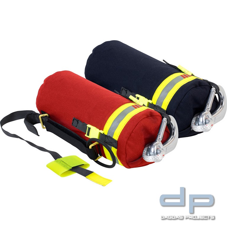 Für 30 m Feuerwehrleine oder 100 m Führungsleine.Kein lästiges Verrutschen oder Abdecken von Ausrüstung, beide Hände sind frei für sinnvolle Tätigkeiten!Dieser Fangleinenbeutel kann an nahezu jedem Atemschutzgerät befestigt werden (für 2-Flaschen-Geräte bedingt geeignet). Er wird mit einem Haken am oberen Halteband der Atemluftflasche eingehakt und mit einem Gummiband über dem Flaschenventil befestigt. Mit einem Handgriff (Zug nach oben) lässt sich der Beutel aushaken und kann so vom Atemschutzgeräteträger selbst abgenommen werden. Durch eine Notlösevorrichtung, die bei einer Kraft von 250-300 N auslöst, wird die Gefahr des Hängenbleibens für die Einsatzkräfte minimiert.Die Leine wird im Inneren des Beutels mit einem Karabiner befestigt. Somit ist, bei Verwendung als Rückwegsicherung, eine sichere Verbindung gewährleistet. Durch die dichtschließende, untere Öffnung wird ein unkontrolliertes Auslaufen der Leine verhindert. (ohne Inhalt).• flammfestes Material, geprüft im 6-Brenner-Test bei 950 °C (± 50 °C) wie Atemschutzvollmasken Kl. 3• Notlösevorrichtung• die Bewegungsfähigkeit des Trägers wird nicht unzulässig eingeschränkt• die Belastung des Trägers wird nicht unverhältnismäßig erhöht• die Schutzfunktion anderer PSA wird nicht gefährdetMaterial: rtx® 950Maße: 40 cm x Ø 14 cmGewicht: 0,36 kgerfüllt die folgenden Anforderungen der DIN 14922:2020-02 (Feuerwehrmehrzweckbeutel):• 6.1.1 Begrenzte Flammenausbreitung• 6.1.3 Zugfestigkeit• 6.1.4 Weiterreißfestigkeit• 6.2 Verschluss-System• 6.3.2 Notlöseeinrichtung• 10 Gebrauchsanleitung