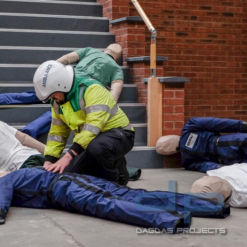 Atemwegsmanagement Training wird in der Regel in einem gut beleuchteten und mit Teppichboden ausgelegten Raum durchgeführt. Wie würden die Übungsteilnehmer aber in einem engen Raum oder unter anderen schwierigen Umständen, etwa einem Verkehrsunfall, vorgehen? Verlassen Sie den Schulungsraum und bauen Sie das Atemwegsmanagement Training in eine realistische Einsatzübung ein. Es wird sicherlich zum Nachdenken anregen und die Bereitschaft Ihres Personals auf die Probe stellen.In diesen Dummy passen alle gängigen erwachsenen Simulaid Torsos.• Das Polyestermaterial ist robust, sicher zu greifen und leicht zu reinigen.• Eine Verletzungsgefahr durch das Klemmen an Kunststoffgelenken ist bei dieser Puppe ausgeschlossen.Im Lieferumfang enthalten:• Schutzoverall• robuste Tasche für Lagerung und TransportGröße: 1,80 mGewicht: 43 kg