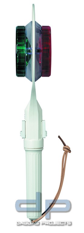 Äußerst stabiler Anhaltestab mit besonders starker Signalplatte, beidseitig flachen Reflektoren und in der Form integrierten , geschützten Kippschaltern.
