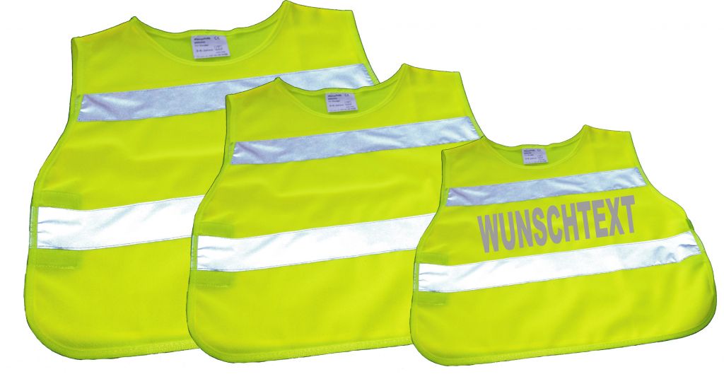 Sie können die Weste vorne und hinten mit Reflektierendem Aufdruck bestellen. Bitte tragen Sie Ihren Wunschtext in das Textfeld ein.