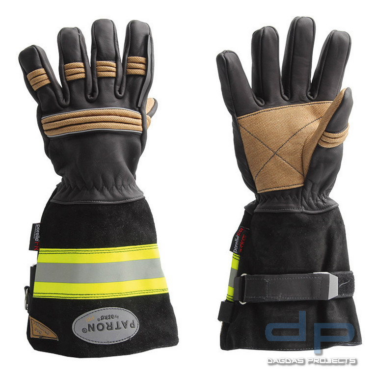 lieferbare Farben: schwarzlieferbare Größen: 6-13Ausstattung:- Innenhand, Handrücken: Spezial-Rindnappaleder, hitzebeständig, hydrophobiert, schrumpfoptimiert gegerbt (nur ausgewähltes Rindnappaleder), bes. Weichheit durch ausgesuchte Fette- Fingergelenk- und Knöchelschutz: PBI gold elastische Maschenware, Innenhandbereich und Daumeninnenseite sind mit PBI gold verstärkt- Innenfutter: aus extrem engmaschiger Strickware 100% Kevlar- Stulpe: Rindspaltleder- Nässesperre, Insert: Porelle-Membran, wasserdicht, winddicht und optimal atmungsaktiv, anatomisch, gute Dampfdurchlässigkeit- Applikationen: 3M-Scotchlite-Reflexstreifen gelb/silber/gelb auf Stulpe 25 mm, roter Karabinerhaken, Label "PATRON PBI by askö" und "DASORIGINAL" gold auf StulpenendeExklusiv und einzigartig mit VisierwischerAnwendungsbereiche:Der PATRON PBI ist geeignet für den Einsatz zur direkten Feuerbekämpfung (Flash-Over, Innenangriff) sowie Bergung, Rettung und technische Hilfeleistung im Sinne der EN 659:2003.Leistungsstufen:Abriebfestigkeit - 4Schnittfestigkeit - 4Weiterreißfestigkeit - 4Stichfestigkeit - 4Brennverhalten - 4