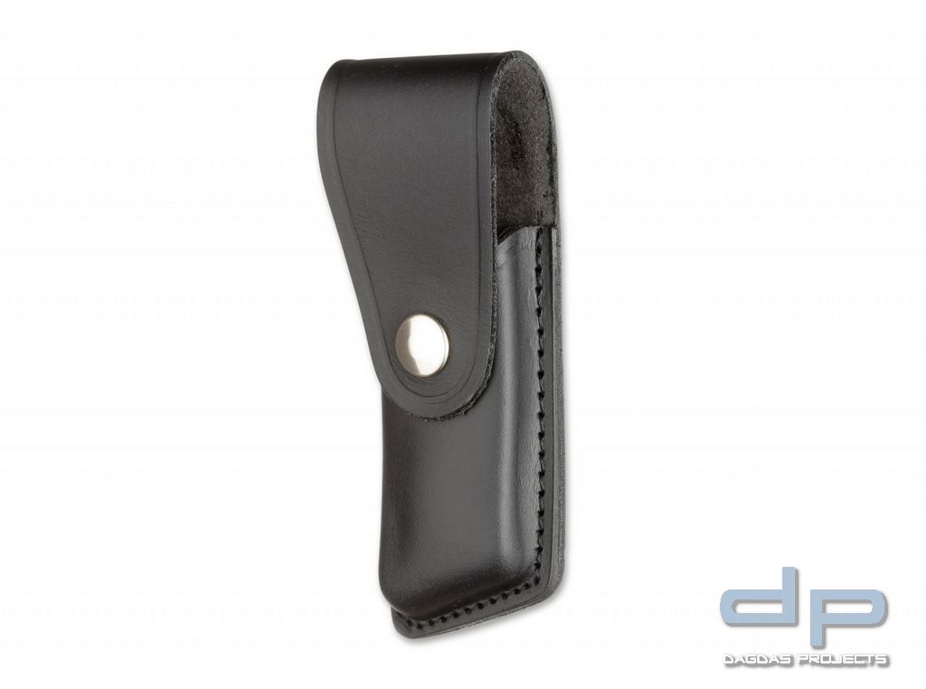 Gürtel-Etui entsprechend Artikel 090030, jedoch in größerer Ausführung. Bis Heftlänge 12 cm. Breite Innenfach ca. 25 mm. Breite Etui ca. 56 mm. Gesamtlänge ca. 14 cm.