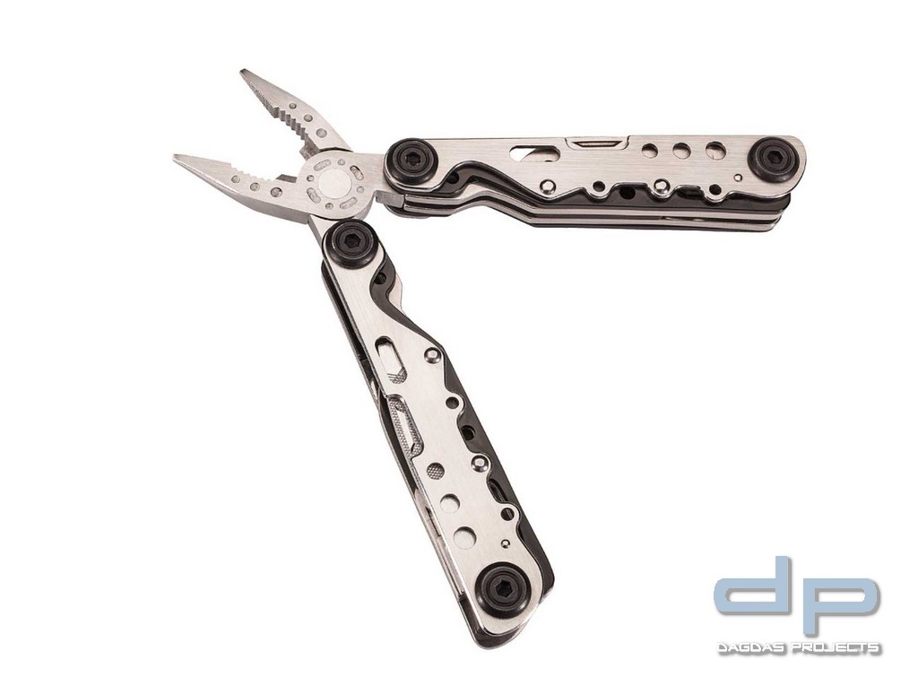 Allzeit gut ausgerüstet ist man mit dem DIME von Gerber. Neben einer Zange mit Drahtschneider verbirgt das Mini-Tool in seinem Inneren zahlreiche weitere Werkzeuge wie Schere, Messer, Flaschenöffner, Feile, Pinzette und Schraubendreher. Ein Ring ermöglicht das Befestigen z. B. am Schlüsselbund. Gefertigt ist das Tool aus rostfreiem Stahl 3Cr13.