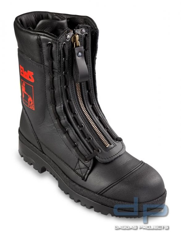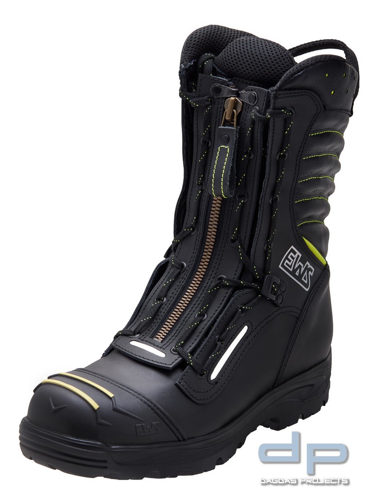 EWS "Safety Zip" System:Kombiniertes Schnürsystem mit YKK-Metallreißverschluss, NOMEX®-Trägerband und flammfesten NOMEX®-Senkeln, Klemmvorrichtung für die Schnürsenkel im Knöchelbereich, Umknickschutz