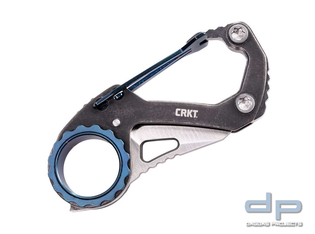 Mit dem CRKT Compano Sheepfoot ist Designer Mike Bond ein außergewöhnlicher Wurf gelungen. Das Slipjoint-Messer mit 8Cr13MoV Klinge fällt insbesondere durch seinen Edelstahlgriff im Black Stonewash-Finish auf, der gleichzeitig als Karabiner genutzt werden kann. Farbliche Akzente setzen das jeweils in Blau gehaltene Klingendrehgelenk sowie der Schnapper.