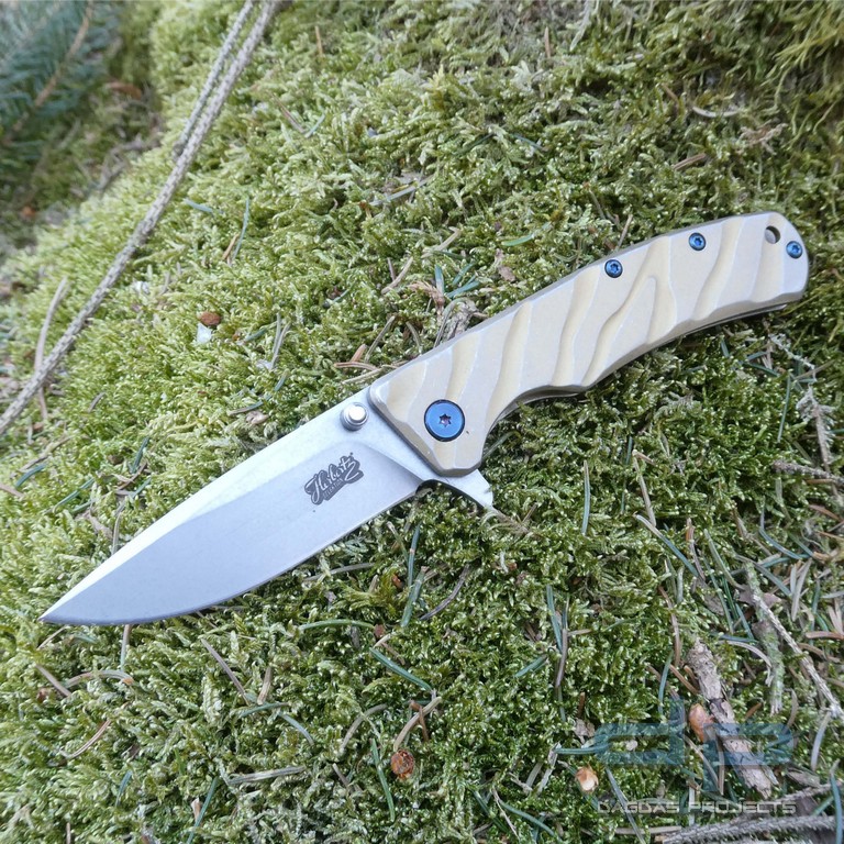 Dieses handliche Einhandmesser aus der Herbertz Selektion Serie ist mit einer kugelgelagerten Klinge in Stone Wash Optik aus rostfreiem AISI 440C Stahl ausgestattet, die mithilfe eines Flippers oder beidseitigen Daumenpins leicht in Arbeitsstellung gebracht werden kann. Ein zuverlässiger Frame Lock Mechanismus arretiert die Klinge in Arbeitsposition. Die CNC bearbeitete Oberflächenstruktur der goldfarbenen Griffschalen aus Edelstahl sorgt für einen guten Grip beim Arbeiten. Eine Fangriemenöse und ein Tip Down Taschenclip runden die Ausstattung ab.