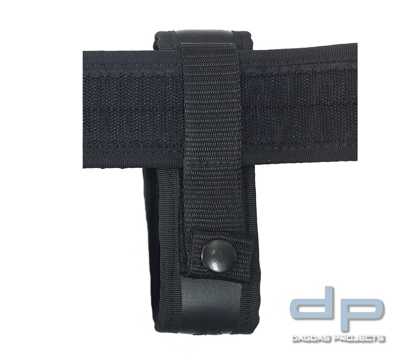 Besonderheit: Die Gürtelschlaufe ist durch Klett/Flausch und Druckknopf gesichert und kann somit befestigt/abgenommen werden ohne den Gürtel zu öffnen - passend für Gürtel bis 70 mm Breite.