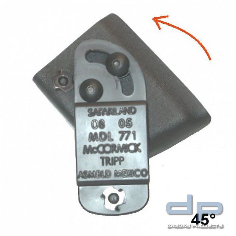 Der Magazinhalter wird mit der Öffnung nach vorn am Gürtel und diagonal zur Waffenhand montiert d.h. bei Rechtshändern auf der linken Körperseite, bei Linkshändern rechts. Bei Bestellung bitte daher unbedingt Links- oder Rechtshänder angeben!